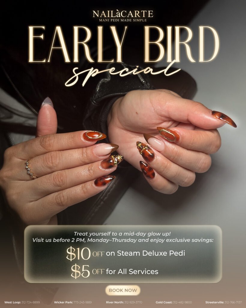 NailàCarte — Chicago’s go-to nail salon for manicures, pedicures, and nail art. Personalized, high-quality service with consistent care. Book no-chip, dip powder, nail art, or pedicures for a seamless experience.