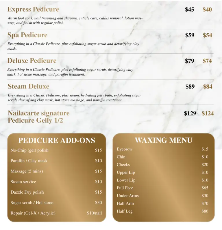 Explore our comprehensive menu of nail services, designed to meet every need from essential upkeep to custom artistry.