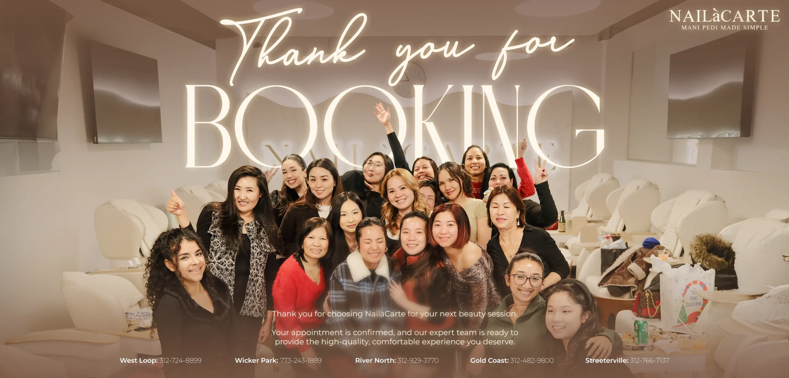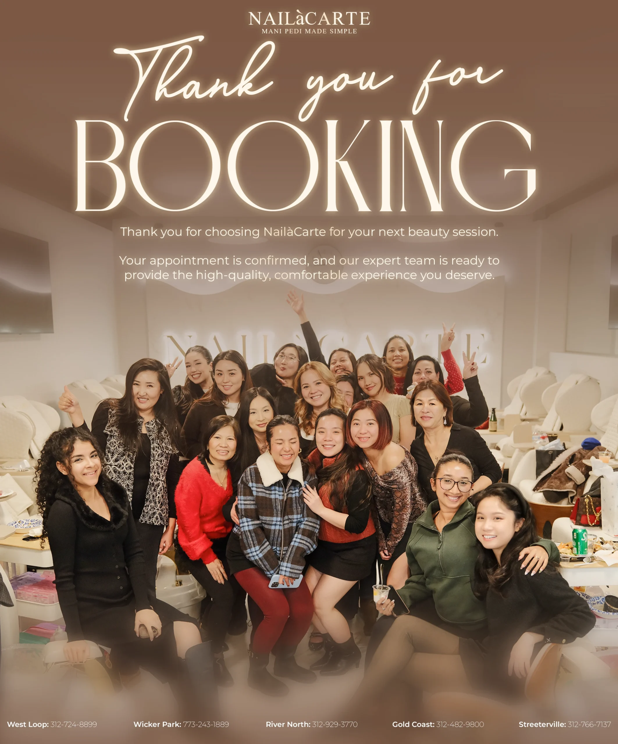 Our salon can comfortably accommodate walk-ins, couples, groups, and more. If you’re seeking mani-pedi services during your lunch hour, we can even provide our simultaneous mani-pedi option! We aim to simply provide the most relaxing spa experience that you can imagine at a West Loop nail salon. Do not hesitate to contact us with any questions about our services, or simply use our easy booking process to book your appointment today!